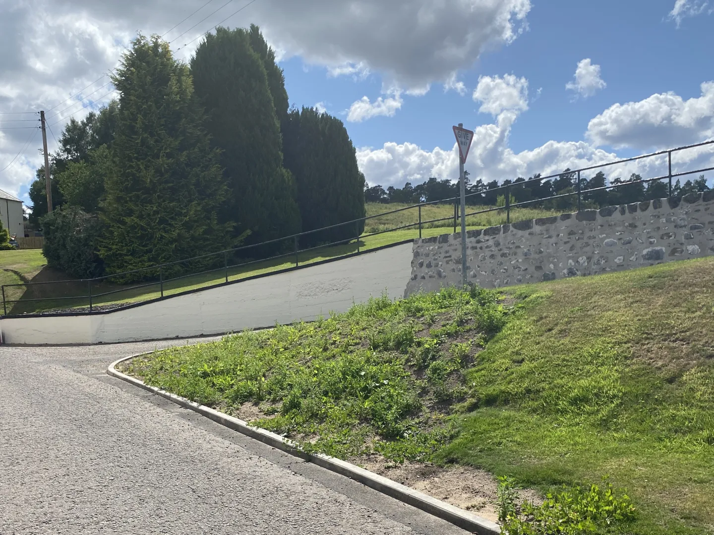 The works began with the careful demolition of 75 metres of unstable stone retaining wall, which was replaced with a new reinforced retaining wall to provide long-term stability and safety. A second wall was cleaned and repointed to preserve its structural integrity while maintaining the traditional appearance of the distillery.