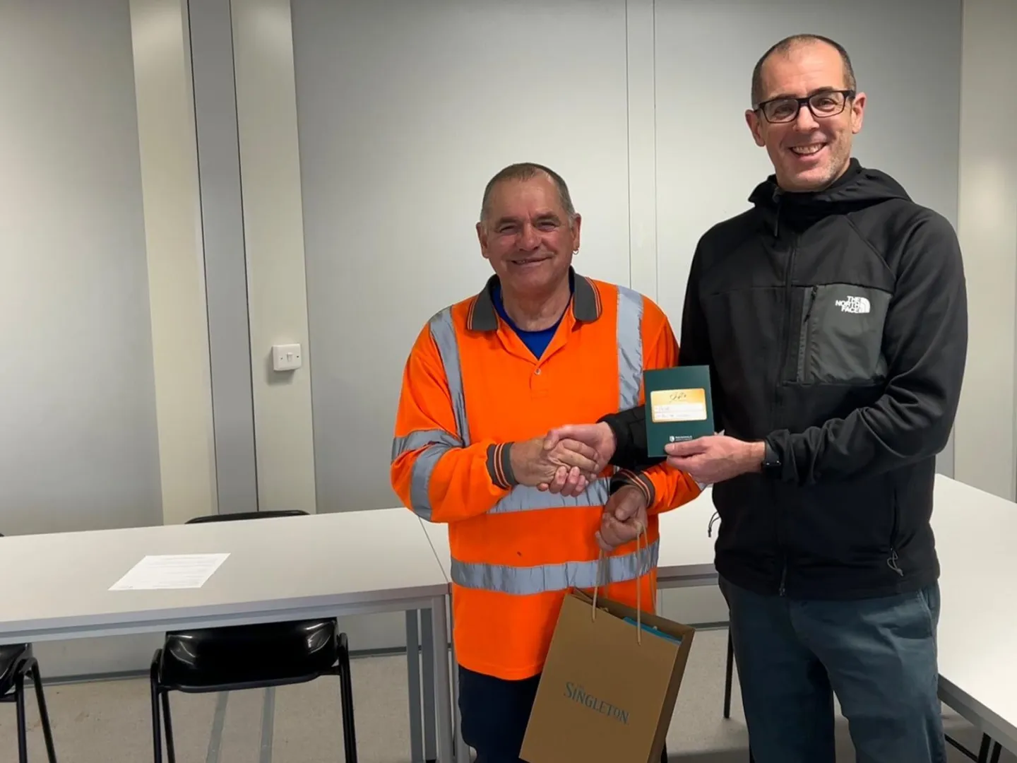Mark Fleming, Global Infrastructure’s Construction Director, commented: “It was with great pleasure that I was able to present Peter with a small token of goodwill from everyone at Global Infrastructure to recognise his imminent and long overdue, (by his own choosing), retirement. After a lifetime in the industry Peter has finally decided to hang up his hard hat and concrete trowel to focus on himself, hopefully taking life a little slower and to enjoy time with his wife and extended family and the dog.”